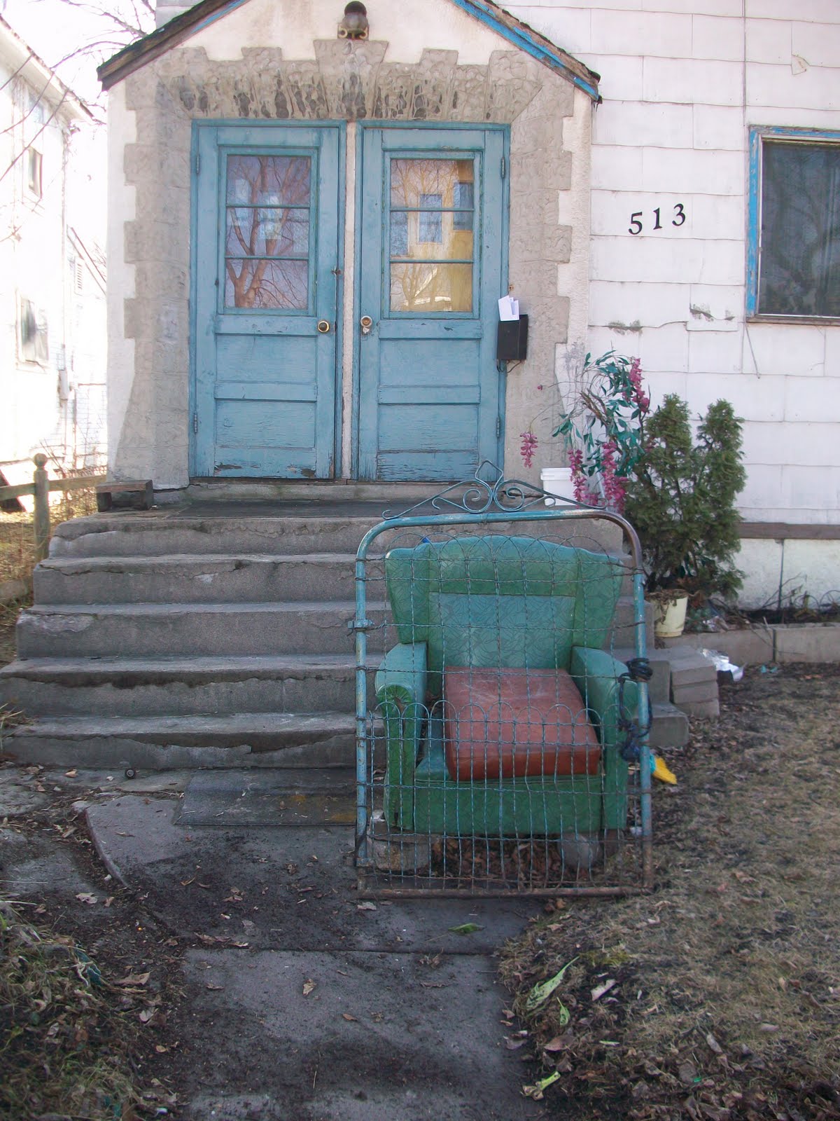 Back on our own street, this is the house and chair of our old neighbor. She sits here to read her mail. Unfortunately her gate broke off the hinge and she props it up on the chair when she isn't using itFriday, March 11, 2011